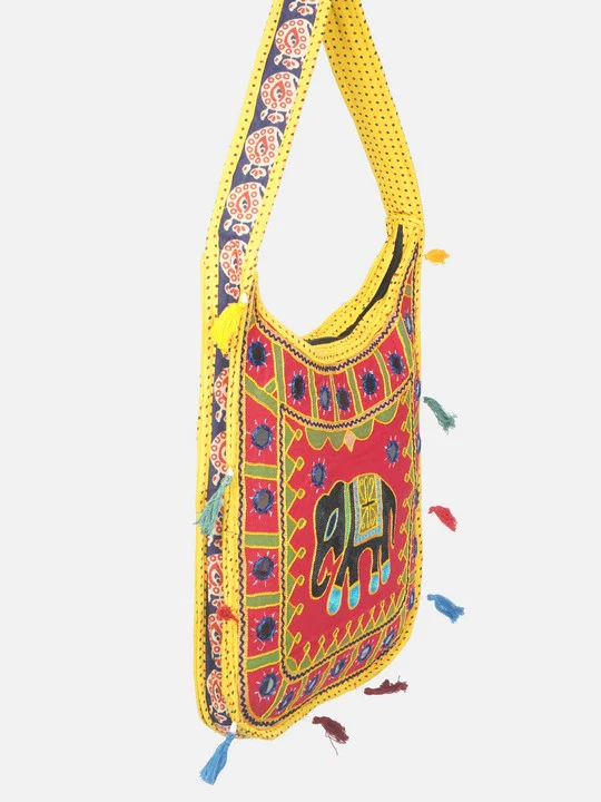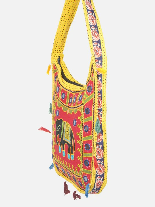 The Banjara India Elephant Design Kutchi Mirrorwork Hand Embroidered Shoulder Bag (BAG-YellowRed) destined to impress, and priced at only Rs. 499.00, for a limited time.